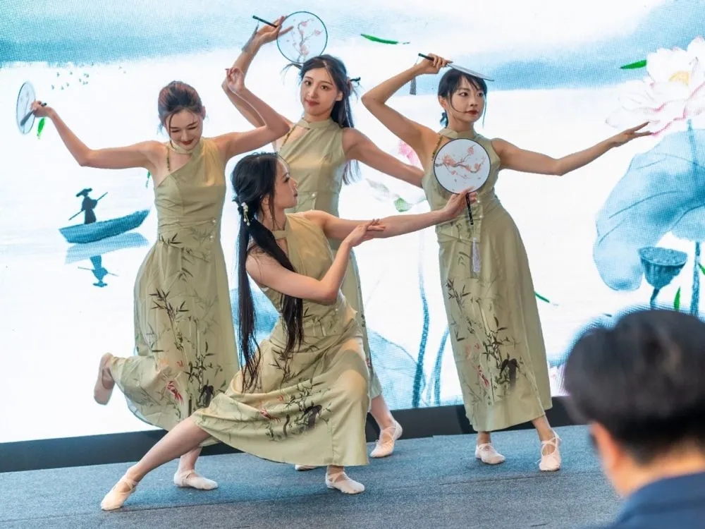 开幕式现场气氛热烈,中外艺术交织碰撞,江苏元素闪耀盛会。20余幅中外摄影师佳作定格江苏的自然风光、城市发展和非遗文化,充分展示江苏的城市魅力与文旅活力;中国民乐演奏表演《茉莉花》与西洋乐演奏《一步之遥por una cabeza》同台演绎中西文化的交流碰撞;精细讲究的碧螺春茶艺表演、时尚新潮的互动打卡装置等让嘉宾沉浸式走进“水韵江苏”……与会嘉宾纷纷表示,此次艺术展是一场视觉盛宴,也是一次心灵的旅行,让他们更加深入地了解了江苏,对江苏产生了浓厚的兴趣,也期待未来能有更多机会与江苏交流合作,为推动江苏文化和旅游的繁荣发展贡献力量。