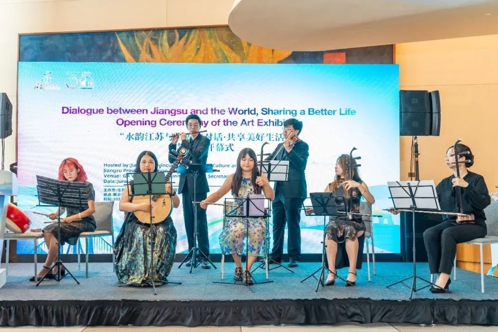 美国东部时间6月21日晚,由江苏省文化和旅游厅与江苏省人民政府外事办公室联合主办的“水韵江苏与世界的对话·共享美好生活”艺术展在位于美国纽约的联合国总部隆重启幕。来自联合国、美中公共事务协会、亚太旅游协会等中美各界嘉宾齐聚一堂,共享“水韵江苏”这一人类美好生活的典范。