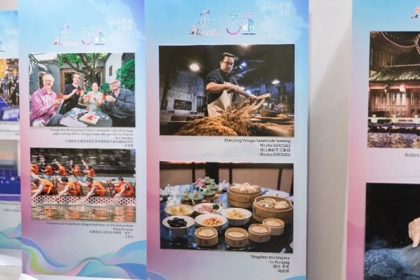 据了解,本次“水韵江苏与世界的对话·共享美好生活”艺术展将持续至7月5日,还特别展出了10多幅回顾江苏与纽约州两地友好交流历史的摄影作品。开幕式现场,江苏文旅专题推介、“水韵江苏”入境游线路推介等同步展开。(陆润卿/摄)