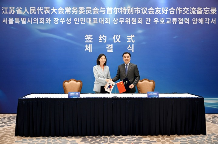 10月15日,江苏省人大与日本韩国地方议会圆桌会议在盐城举行。省委书记、省人大常委会主任信长星会见与会嘉宾,并与韩国首尔特别市议会议长崔好廷共同签署两省市人大常委会和议会友好合作交流备忘录。
