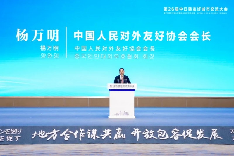 杨万明对各位嘉宾的到来表示欢迎。他说,面对错综复杂的全球挑战,习近平主席提出构建人类命运共同体理念和全球发展倡议、全球安全倡议、全球文明倡议、全球治理倡议,为世界注入更多确定性、稳定性和正能量。中日韩三国互为近邻和重要合作伙伴,地方政府交流日益密切,民间交流不断迸发出新的生机和活力。我们将搭建更多平台,汇聚各方力量,深化经贸合作、引领科技创新、扩大人文往来、促进可持续发展,共同推动中日韩合作整装再发、提速换挡,更好造福三国人民,为地区繁荣稳定作出更大贡献。