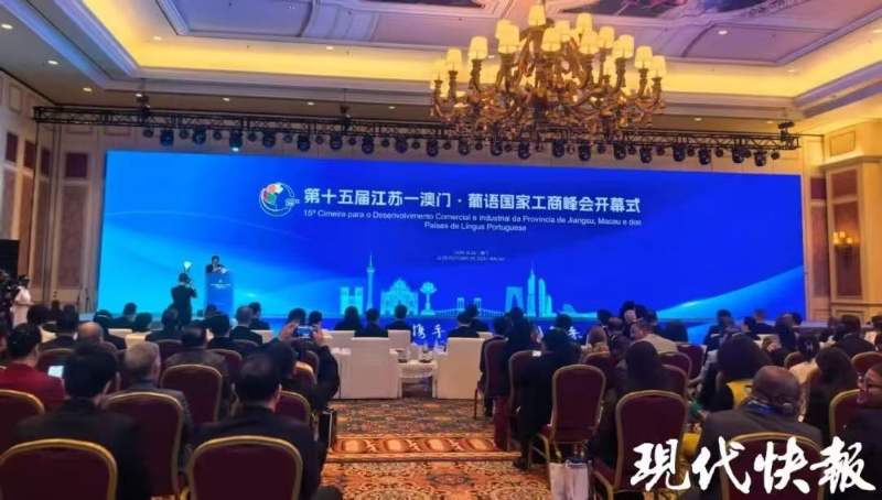 第十五届江苏—澳门·葡语国家工商峰会开幕,现场签订康养、新能源、旅游等多项合作