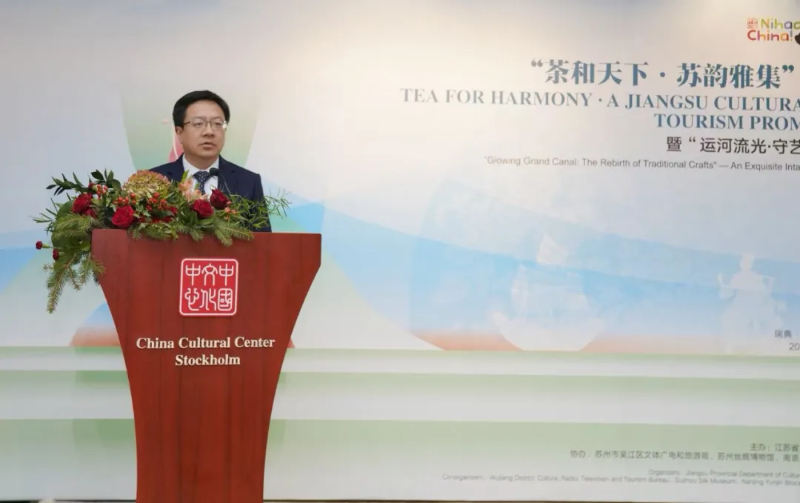 在瑞典期间,陈忠伟分别会见瑞典“一带一路”研究所所长史蒂芬·布鲁尔、瑞典国家旅游局传播主任吉姆·霍夫韦贝,出席“茶和天下·苏韵雅集”文旅推介暨“运河流光・守艺新生”非遗精品展并致辞,访问在我省投资企业瑞典斯堪尼亚集团。在出席“茶和天下·苏韵雅集”文旅推介暨“运河流光・守艺新生”非遗精品展时,陈忠伟表示,今年是中国与瑞典建交75周年,双方互利共赢关系不断加强,在新能源、清洁技术、绿色交通、人才培养、文化旅游领域的合作日益紧密。我们以“茶和天下”为主题推介江苏文旅资源,将江苏“丝、茶、瓷”经过21世纪海上丝绸之路再次带来瑞典,就是要以茶为媒,见证彼此跨越山海的友谊,携手续写文化互鉴新的佳话。