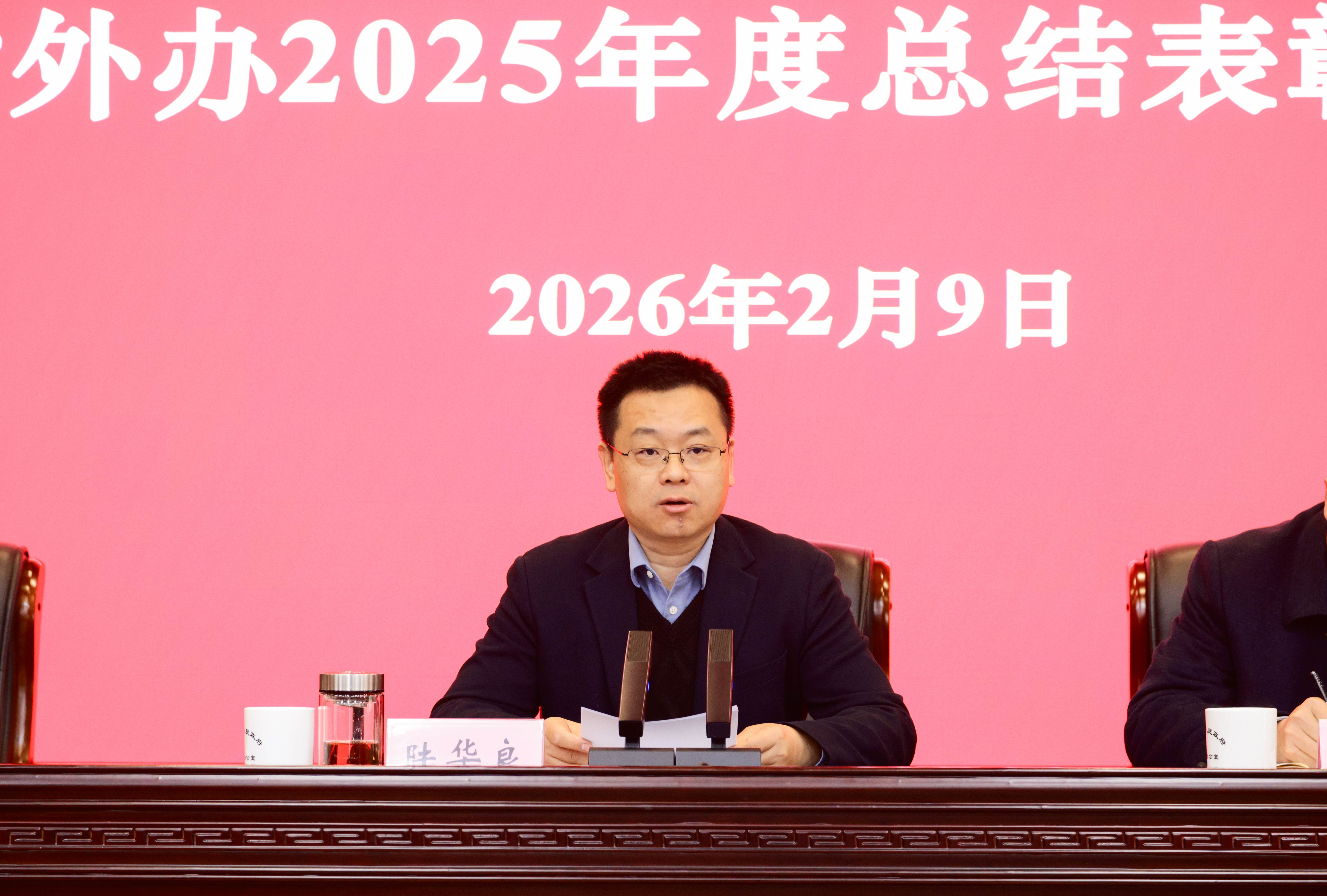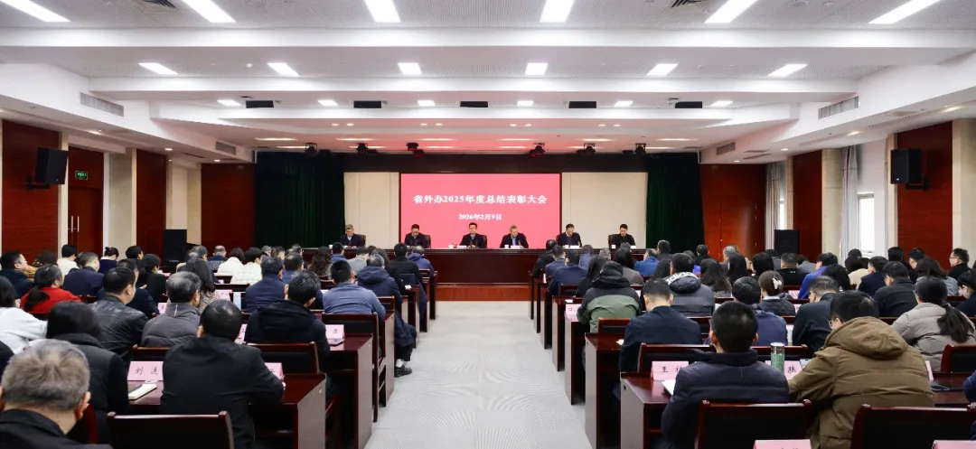 2月9日,省外办召开2025年度总结表彰大会。办党组书记、主任陆华良讲话,副主任刘建东主持会议。办领导班子成员,省纪委监委派驻省科技厅纪检监察组负责同志,办机关处室全体人员、直属单位班子成员、离退休老同志代表,受表彰的先进集体代表和优秀个人等130余人参加会议。