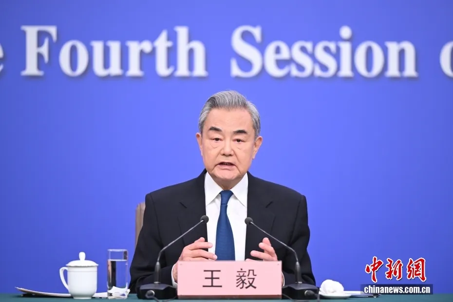 3月8日上午10时,十四届全国人大四次会议在梅地亚中心新闻发布厅举行记者会,邀请中共中央政治局委员、外交部长王毅就“中国外交政策和对外关系”相关问题回答中外记者提问。中新社记者 田雨昊 摄