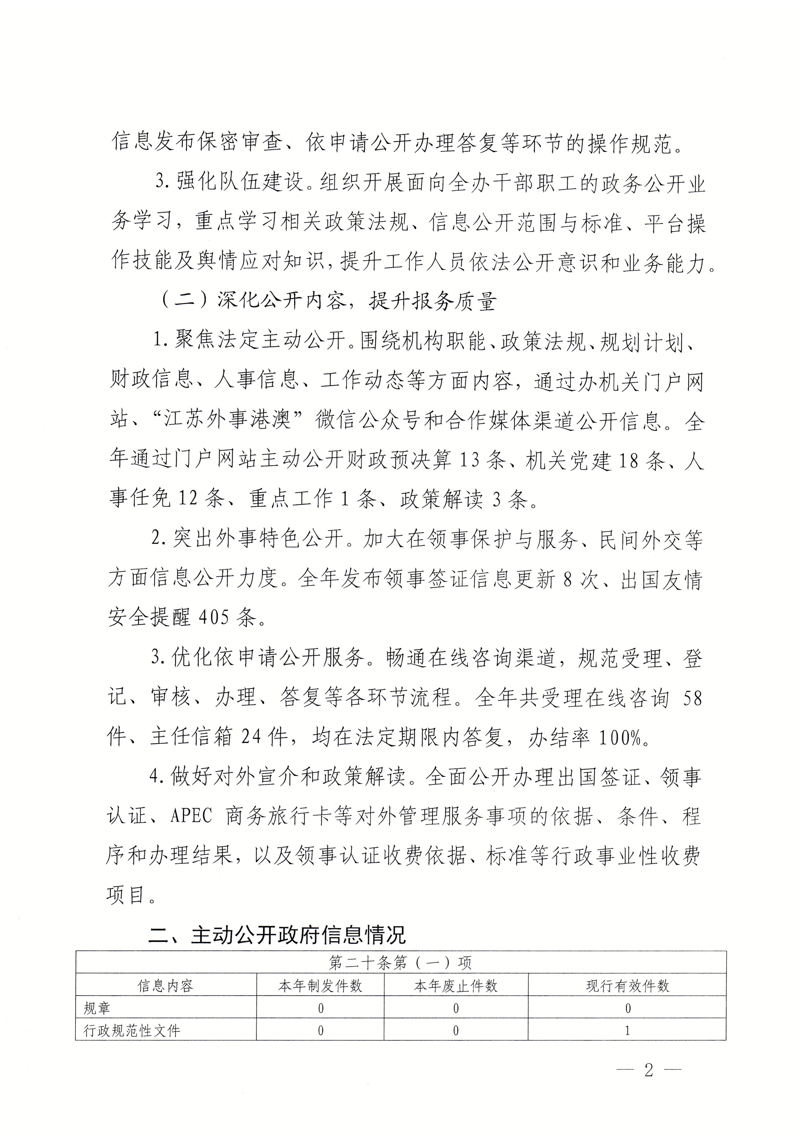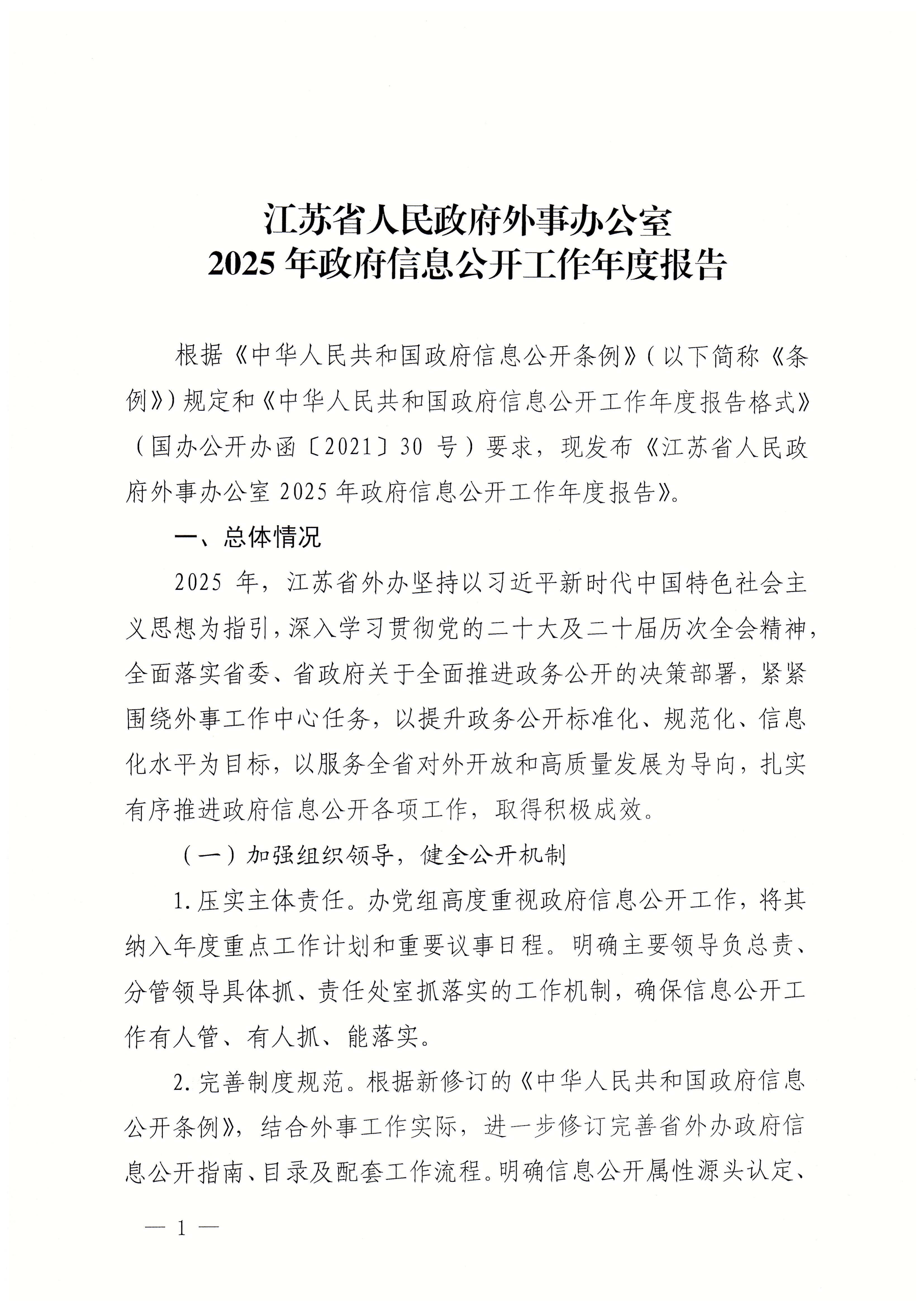 江苏省人民政府外事办公室2025年政府信息公开工作年度报告