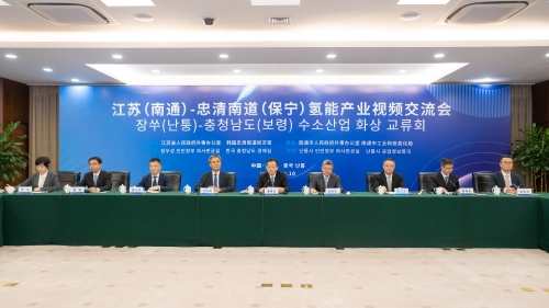 11月10日下午,江苏(南通)-忠清南道(保宁)氢能产业视频交流会在南通成功举办。江苏省外办副主任金尚军、韩国驻沪总领事金胜镐、南通市政府党组成员潘建华、韩国忠清南道保宁市副市长高孝烈及两地产业主管部门负责人、氢能企业代表共同与会,就共谋氢能产业发展开展交流。